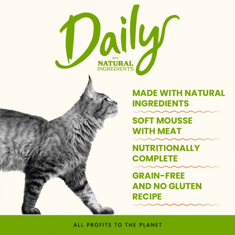 complete and balanced wet food designed for the everyday nutrition of adult cats. It belongs to the "Daily" line, which focuses on providing premium quality ingredients at an accessible price.