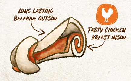 8in1 Delights Chicken Bones XS are made of tasty beefhide and delicious chicken breast and ensure intensive, long-lasting chewing fun for toy dogs with a weight below 5kg.