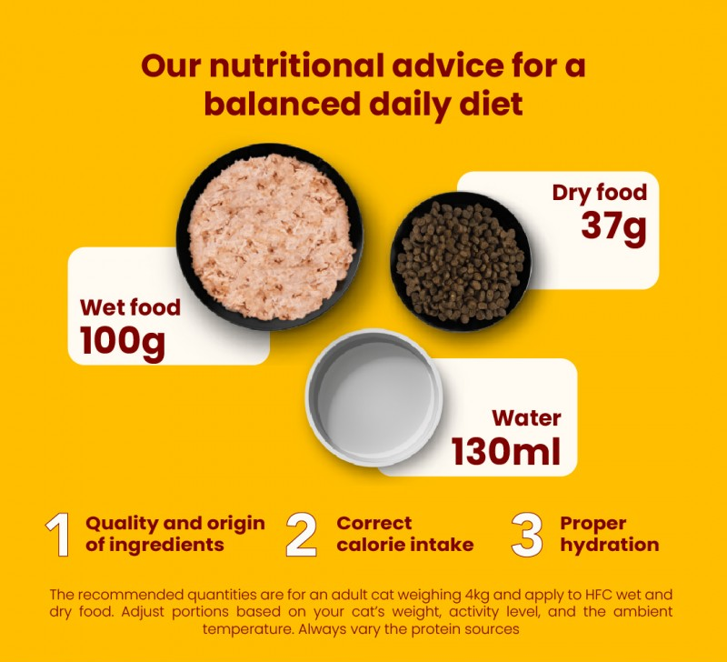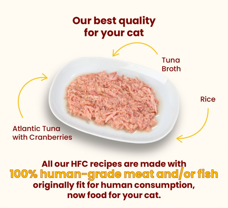 Discover HFC Urinary Help – a premium range of complementary wet foods specially developed to support your cat’s urinary tract health. Enriched with cranberries, known for their natural acidifying and antibacterial properties, this recipe helps create a urinary environment that discourages harmful bacteria. Now your cat can enjoy their favourite HFC recipes with added functional benefits – promoting daily well-being without compromising on taste.