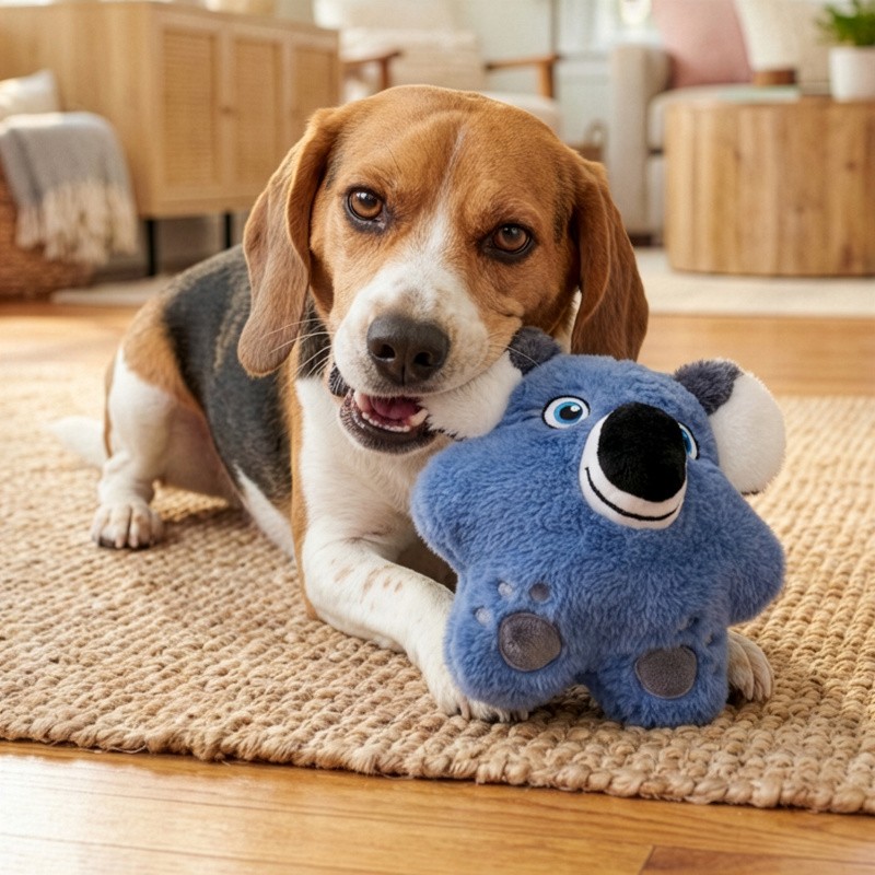 KONG Snuzzles Koala is plump full of fun with a full body squeaker that calls out with a long, loud squeak. The uber plush exterior continues the delight while satisfying instinctual chewing behavior and crackly ears extend the engagement. The dense mouthfeel continues the engagement by rewarding appropriate play with every bite. Ideal for indoor fun, the flat shape is sure to engage with dogs of all different sizes.