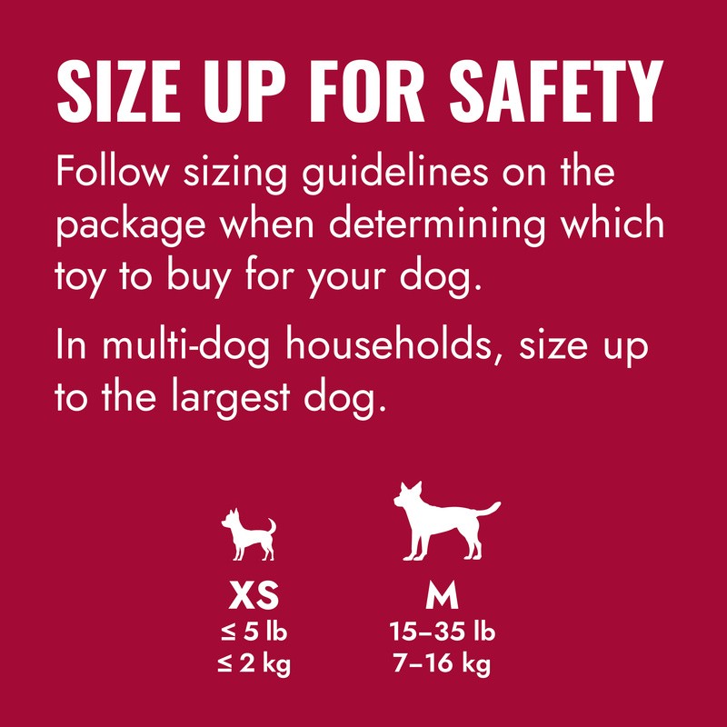 Supervised use only. Remove all packaging. Discontinue use if damaged. Power Chewers may need to size up one or two size