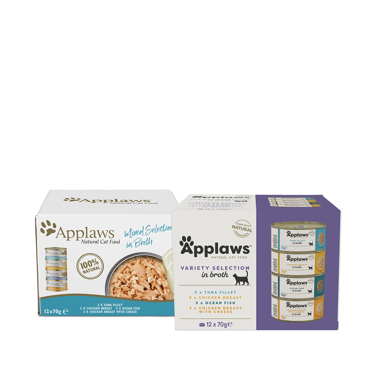 Applaws Variety Selection in Broth is a complementary pet food for adult cats, made with natural ingredients.