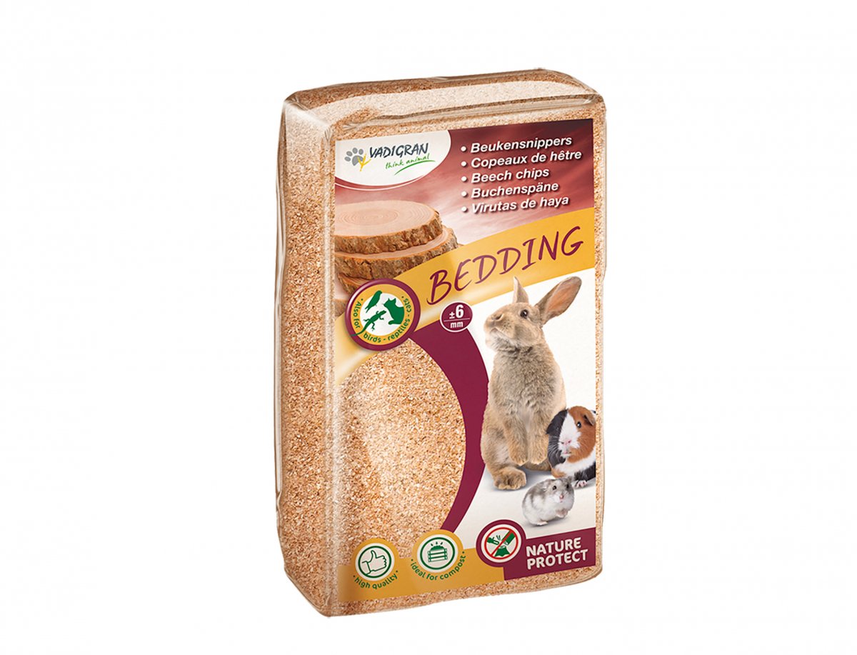 Vadigran beech chips are a 100% natural absorbent litter for rabbits and rodents, but also for cats, reptiles and birds.