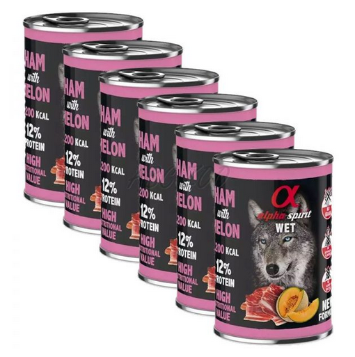 Alpha Spirit Ham with Melon is a Complete Wet Food for Adult Dogs, prepared with high quality raw materials, a product for a balanced, healthy and flavorful diet.