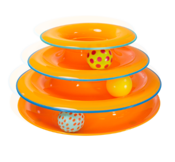 3 BALLS SPIN & ROLL – This addictive cat toy is designed with 3 levels of tracks and 3 brightly colored balls