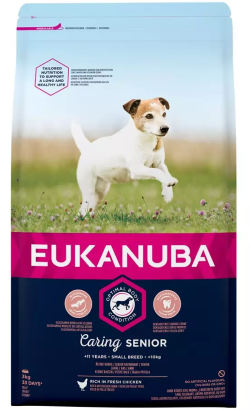 Eukanuba Mature & Senior Small Breeds is a complete and balanced food for adult dogs (small and medium breeds up to 10 kg) from 7 years old. The specially coordinated nutritional balance ensures that your dog receives optimal care for his age. Your dog's health will not go unnoticed!3kg
