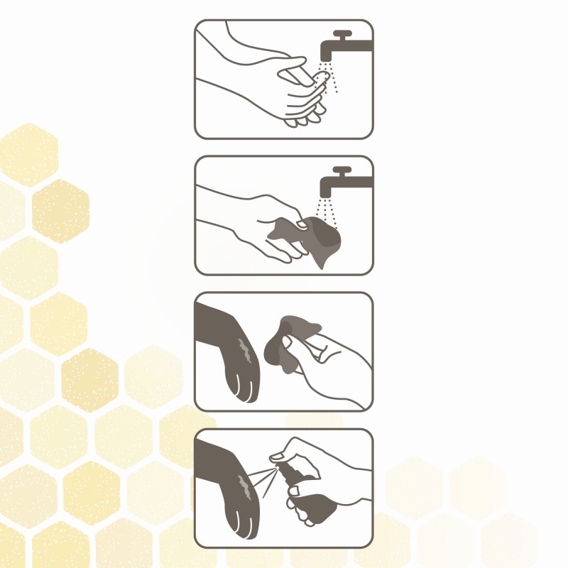Always clean the wound with lukewarm clean water (and cotton wool) before applying the spray.