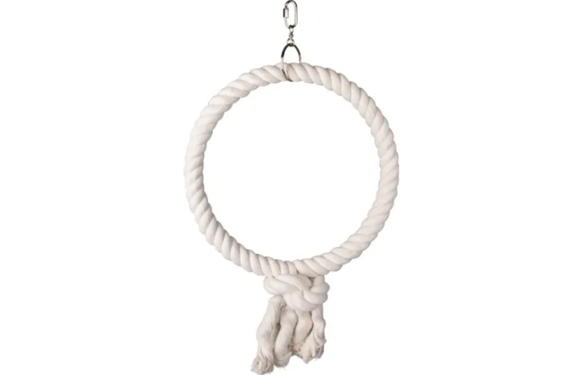 Add a playful touch to your bird with this adorable bird swing! Made from sturdy woven rope and easy to hang with the hook. Safe and fun!