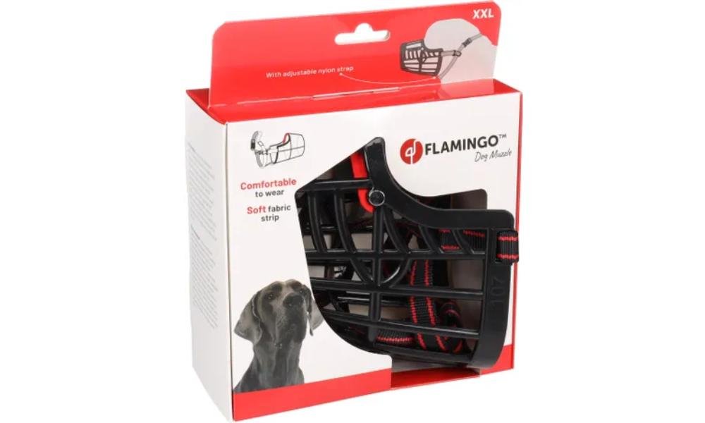 The Flamingo Silas Muzzle (Size L) is a physiological basket-style muzzle designed to balance canine safety with physical well-being. It is primarily used to prevent biting, scavenging (eating unwanted items), and destructive behavior during walks or training sessions.