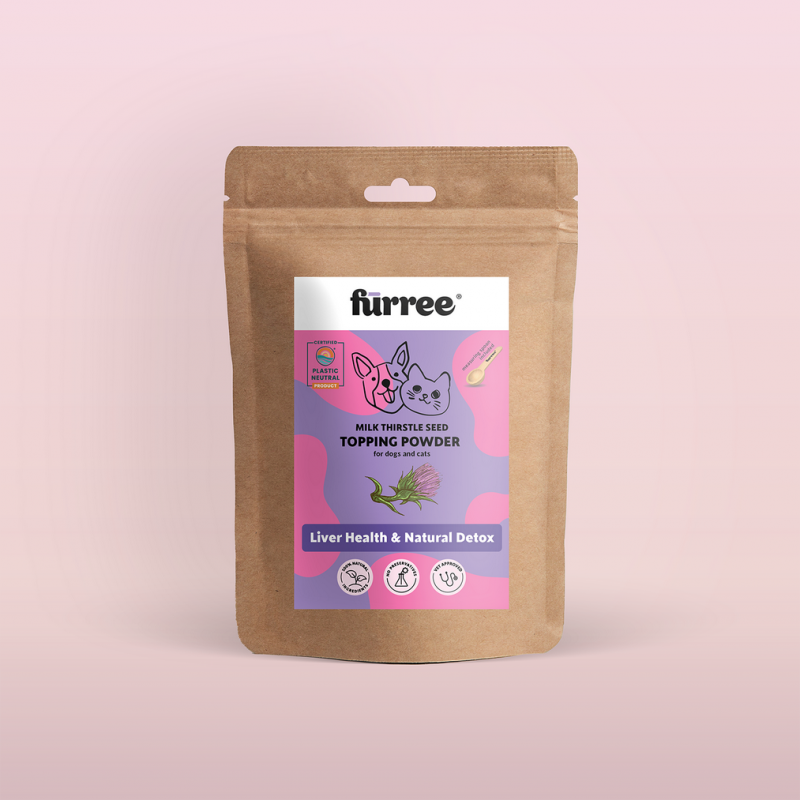 Milk thistle seed powder naturally supports liver detoxification, promotes cell regeneration, and protects the body from oxidative stress. It is especially recommended alongside medication treatments, during the use of tick repellent tablets, and for reducing allergy symptoms. For pets with sensitive digestion, it is an ideal choice instead of the oil-based version.