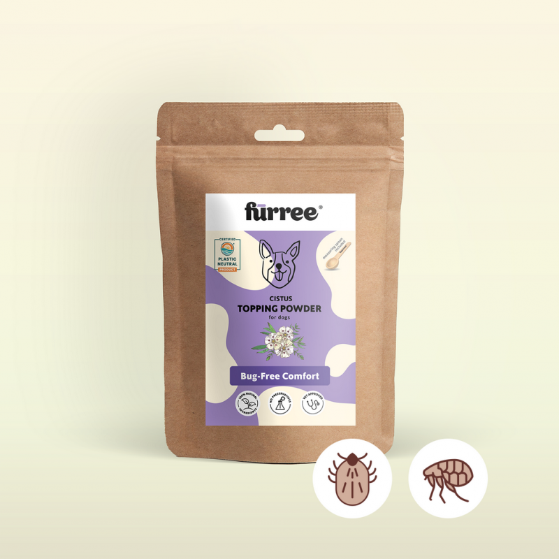 Cistus powder is a natural solution that may help keep external parasites (e.g., mosquitoes, ticks) away, strengthens the immune system, and supports the body’s natural defenses against bacteria, viruses, and fungi. With its anti-inflammatory and antioxidant properties, it contributes to your dog’s overall health and vitality.