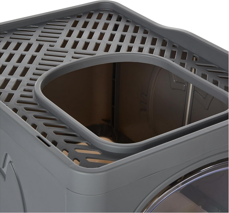 The litter box also includes a compatible hole for a cat litter scoop  ensuring quick clean-ups and maintenance