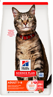 Hill's Science Plan Adult 1-6 Dry Cat Food with Salmon . It is a complete and balanced food formulated to meet the energy needs of adult cats during their prime years (ages 1–6).