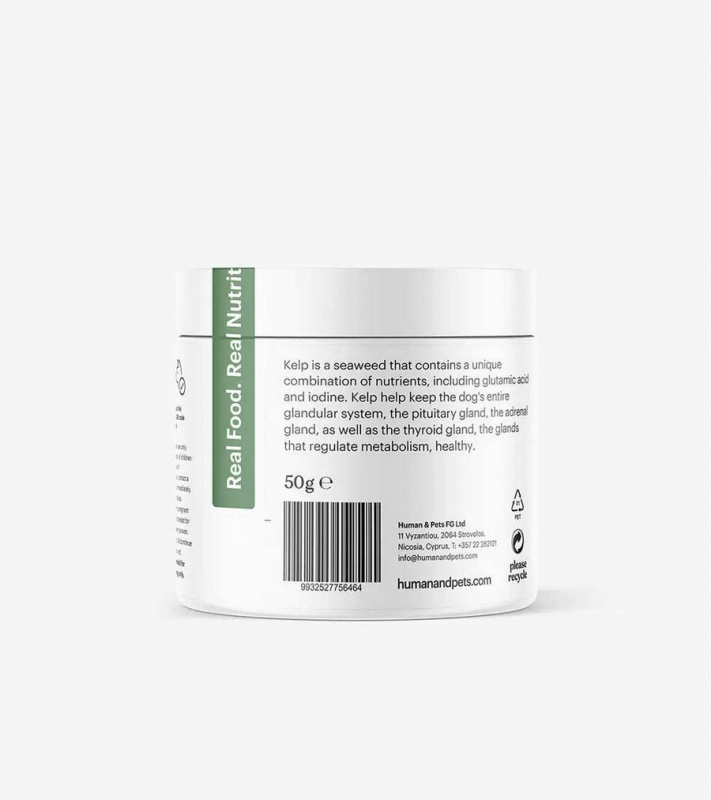Kelp is a seaweed that contains a unique combination of nutrients, including glutamic acid and iodine. Kelp helps keep the pet's entire glandular system, the pituitary gland, the adrenal gland, as well as the thyroid gland, the glands that regulate metabolism, healthy.