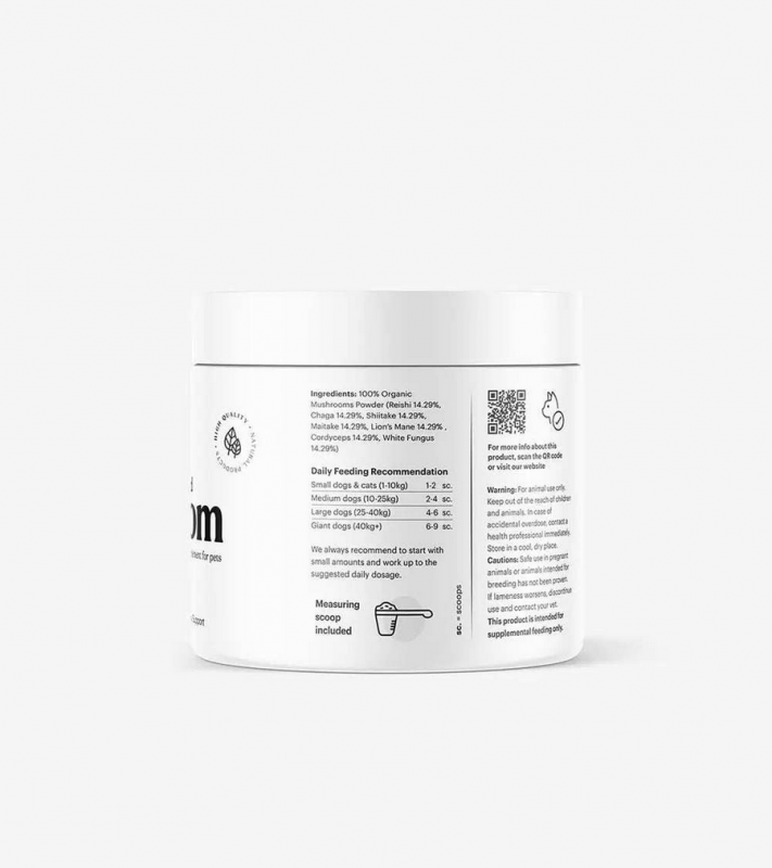 Formulated with the well-being of your pets in mind, our Mushroom Superblend is a convenient way to introduce the benefits of mushrooms into their daily routine. Whether young or old, large or small, your pets can now enjoy the advantages of this powerful blend in a manner that suits their unique needs.