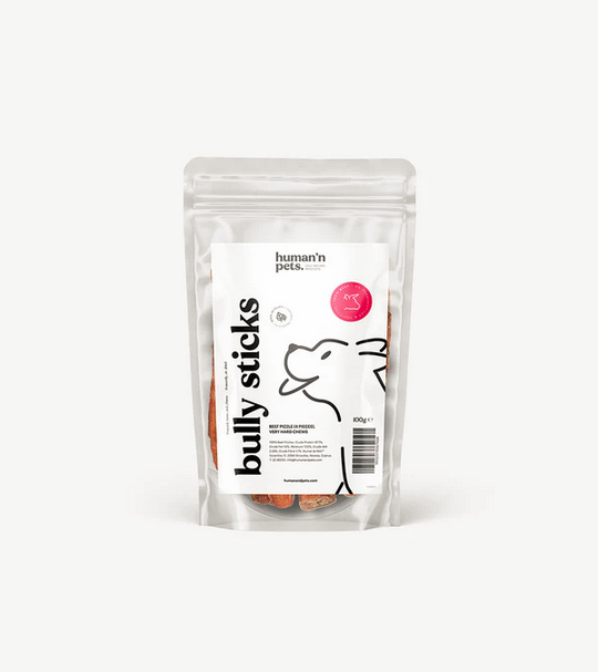 Say hello to your pup's new favorite chew! Our Air-Dried Bully Sticks are more than just a delicious snack — they’re a joyful chewing experience! Made from 100% beef, these single-ingredient sticks are slowly air-dried to preserve nutrients, flavor, and chewiness, making them a wholesome and irresistible treat for dogs of all sizes.Perfect for keeping your dog busy, satisfied, and naturally cleaning their teeth in the process, bully sticks are a safe, fully digestible alternative to rawhide. Whether it’s a reward after a walk or a chew to enjoy during quiet time, these sticks bring a moment of pure happiness to your furry friend's day.No additives. No preservatives. No funny business — just pure, tail-wagging goodness in every bite.