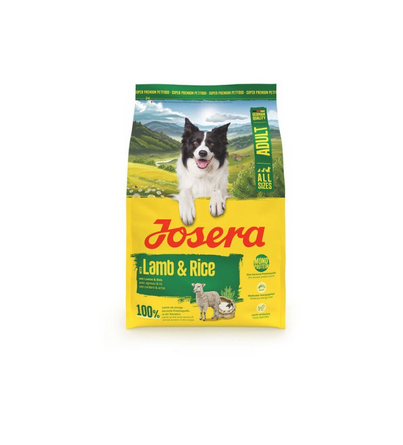 Josera Adult Lamb & Rice is a premium dry dog food designed specifically for adult dogs with sensitive digestive systems or normal-to-low activity levels.