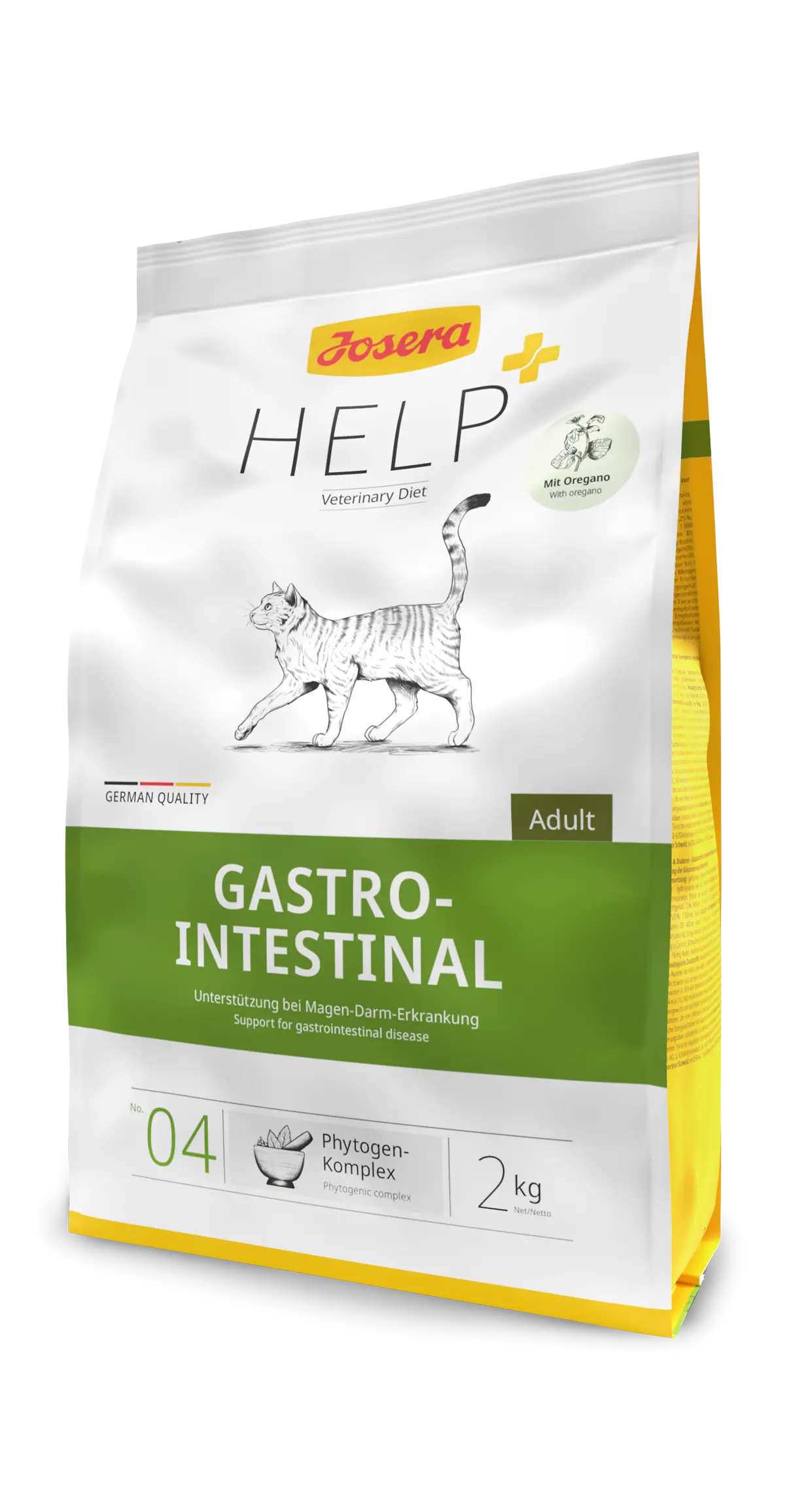 If the cat suffers from gastrointestinal problems, belching, stomach rumbling and diarrhoea are the order of the day. But this does not have to be the case: Our Josera Help Gastrointestinal was developed especially for such cases. The complete medical feed can support gastrointestinal problems thanks to its easily digestible, gluten-free recipe as well as its natural ingredients. Digestive regulating fibres help promote the desired gut bacteria. The phytogenic complex contains oregano, which has been used in medicine since ancient times – in traditional veterinary medicine it is valued for its positive properties for the gastrointestinal tract. With selected ingredients, Josera Help Gastrointestinal can help velvet paws to have more peace in their tummies. It promotes good and regular bowel movements and supports the stomach with its easily digestible recipe.