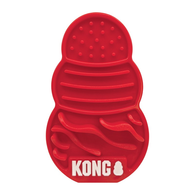 KONG Licks ridges and grooves hold Easy Treat, peanut butter, kibble, etc. for long-lasting licking. Fights boredom and occupies distraction during exams, baths and nail trims. Plus, licking releases endorphins that help soothe dogs. Two suction cups stick to flat surfaces for a movable feast of fun. Different ridge shapes hold variety of food, keeps pups interested and helps clean tongue and teeth.