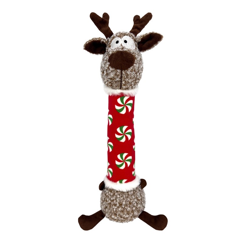 KONG Holiday Shakers Luvz Reindeer’s long, floppy body satisfies dogs’ shaking instincts—and is also ideal for sliding down chimneys. Low-tone squeaker keeps dogs playing through the holidays and beyond, providing tons of healthy, active play with a pal dressed up for the holidays.