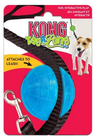 The KONG TagALong Ball (Medium) is an interactive fetch toy specifically designed for convenience during walks.