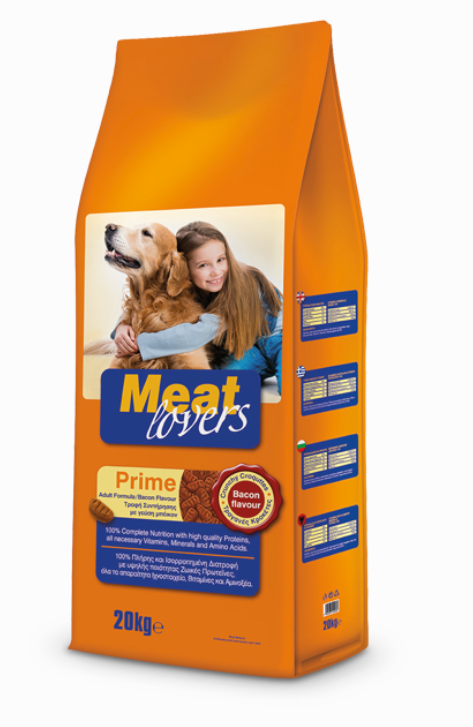Meat Lovers Dog Bacon is a complete and balanced dry food designed for adult dogs.