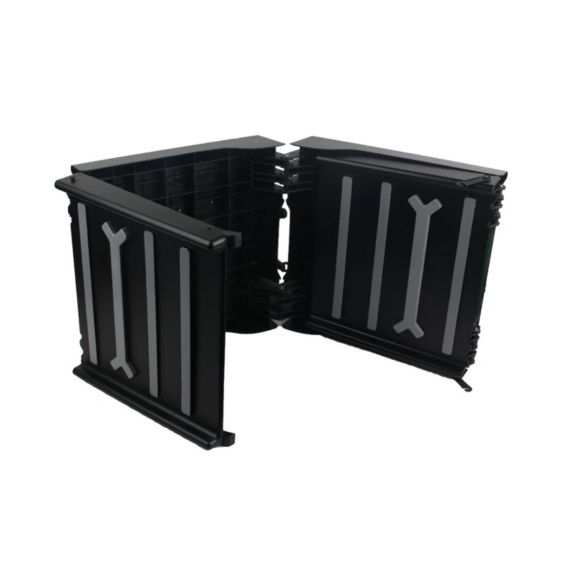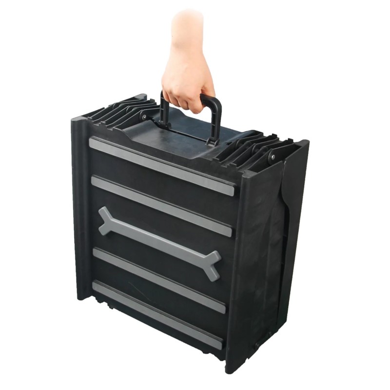 Folds flat into four parts—easy to carry and store in trunks or back seats