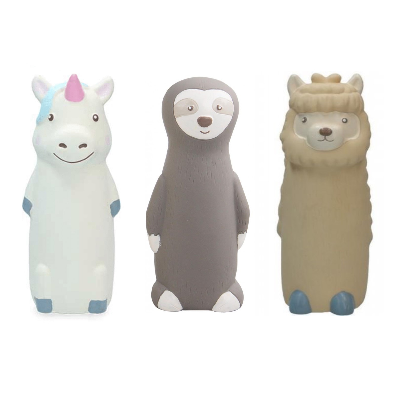 A unique game made of latex, with a wonderful sloth, alpaca or unicorn shape.