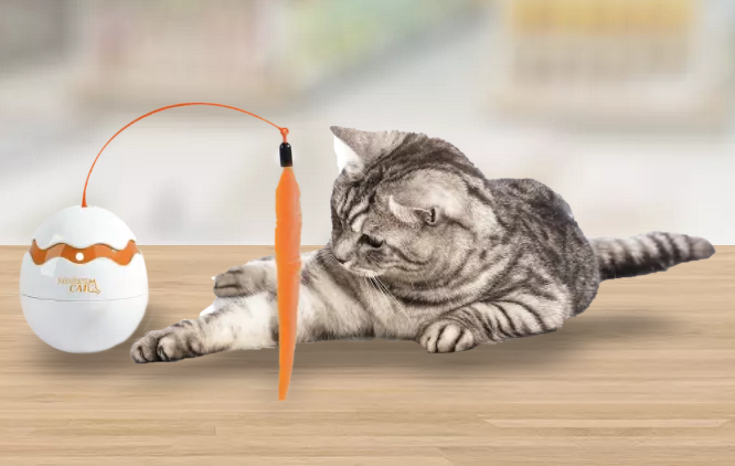 Spinning ball whirls a tail gently enticing cats to pounce & chase