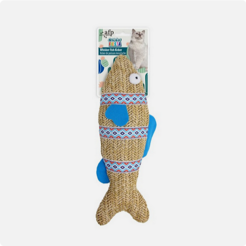 Say hello to the Whisker Fiesta Fish Kicker — a fun, elongated toy made for wrestling, kicking, and pouncing.