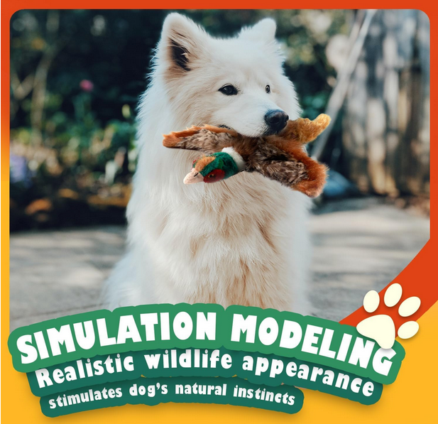 Indulge your canine companion with our lifelike pheasant dog toy, designed to engage their natural instincts and provide endless hours of entertainment. Expertly crafted from premium, durable materials, this plush toy features a built-in squeaker that delights dogs who love to chew, squeak, and play. Its realistic design and interactive features keep your dog mentally stimulated and physically active. With its strong construction, this toy ensures lasting enjoyment, making it an essential addition to your dog's playtime repertoire. Perfect for play, fetch, and cuddle time, it's sure to become a favorite.