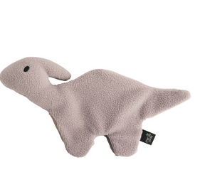 Unfilled soft rag dinosaur The unfilled teddy dinosaur from Minus One will be your dog’s ideal companion to play and sleep. This plush is made of very soft fabric and has no filling, it is like a cloth or a small blanket, so it is perfect for puppies or small dogs that tend to break tendy toys, so do not have to worry about filling. Parasauropolophus is a herbivorous dinosaur, so your dog can play with his new friend without anyone getting hurt. Minus One plushes are made from recycled bottles, so not only will your furry friend love them, but it also helps us to give an aid to the environment. Features: Dinosaur plush.Manufactured from recycled bottles.Ideal for dogs.Super soft fabric.No filling. Material: Polyester. Color: Grey. Size Guide: Right Size Single Size Recommended for small dogs and dogs.