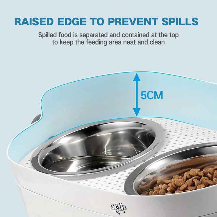 The clever “3-in-1” design means it doesn’t just elevate — it also has drainage beneath so water spills trickle down below, and you can even adjust the tilt or height to better suit your pet’s ergonomics.