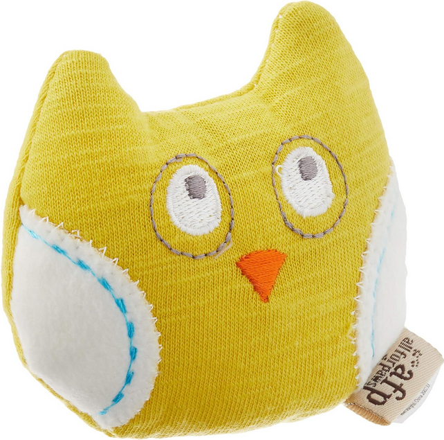 This soft, owl-shaped toy often features embroidered or stitched detailing, a cuddly form, and dangling elements to spark curiosity.