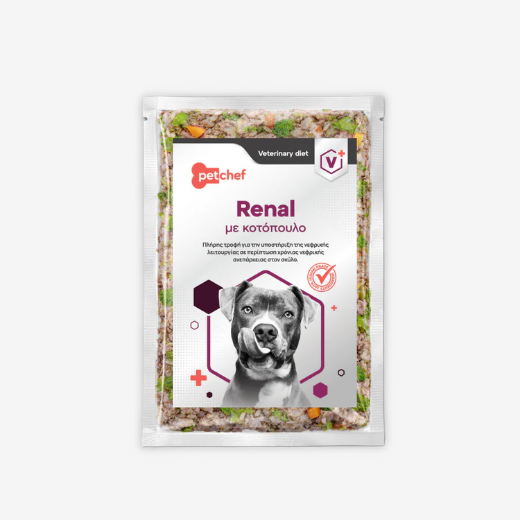 Renal cooked recipe for dogs is a complete and balanced nutritional solution, specially designed for Support for kidney function in dogs with kidney disease. With reduced phosphorus content and controlled levels of high biological value protein, it helps reduce the burden on the kidneys while maintaining muscle mass.