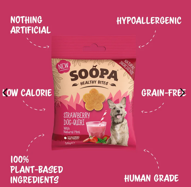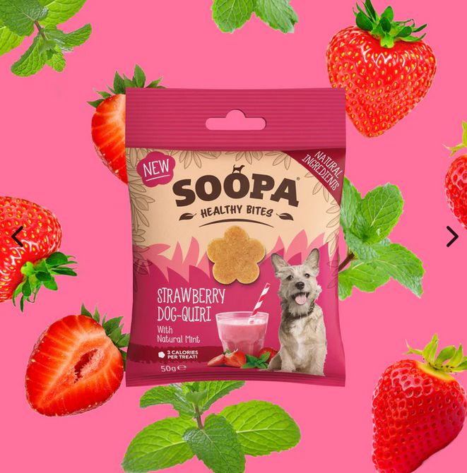Introducing the Soopa Strawberry Dog-Quiri Healthy Bites, a delightful treat that brings a burst of summer to your dog's day!