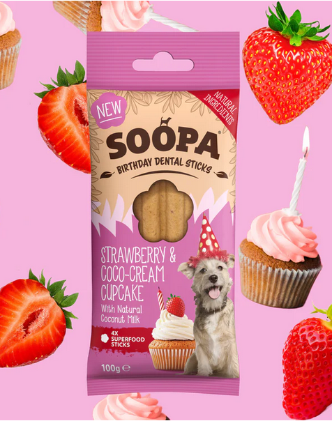 Soopa Strawberry & Coco-Cream Cupcake Birthday Dental Sticks