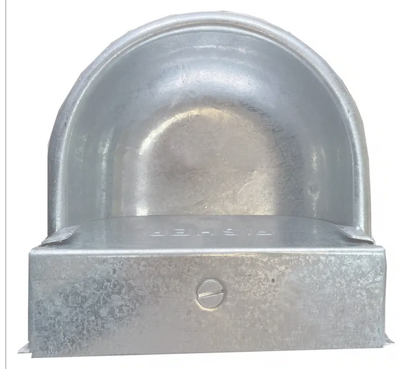The Fisher Automatic Drinker is a durable, galvanized metal water bowl that provides a steady, self-refilling supply of water for pets or livestock.
