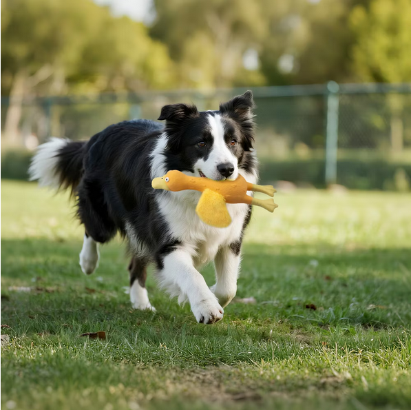An extraordinary toy that offers several reasons to play.The duck's body is made of durable latex and its soft plush wings are lined with crispy material. Inside the toy you will find a squeaker that is guaranteed to catch the dog's attention.The combination of different materials and sounds that this toy offers teases the dog's senses and guarantees long and fun play.Size: 28 x 19 x 5,5 cmDesigned for supervised play.